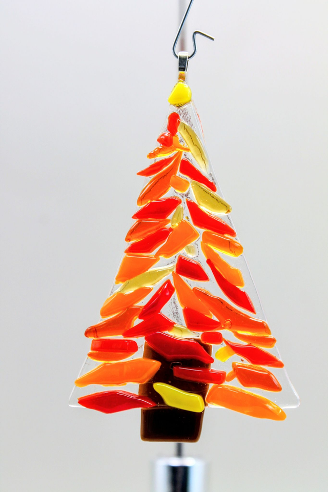Add a touch of elegance to your Christmas tree with our stunning ornament made from colourful fused glass shards. This unique Christmas tree decoration is sure to be a standout piece on your tree, catching the light and showcasing a beautiful array of colours. Handcrafted with care, this ornament is not only visually appealing but also durable for years to come. Elevate your holiday décor with this eye-catching piece that will bring joy and sparkle to your festive celebrations. Make your Christmas tree shine with our exquisite fused glass shard ornament.