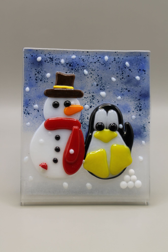 Frosty the Snowman & Penguin Free standing Suncatcher