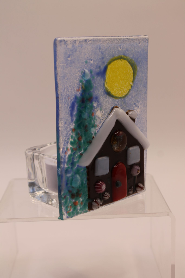Transform your home with our charming Gingerbread House Tea Light Holder. This whimsical Christmas scene is perfect for adding a festive touch to your holiday decor. Crafted from fused glass, this tea light holder is designed to last season after season. Place it on your mantel, coffee table, or dining room centerpiece to create a cozy and inviting ambiance. Whether as a gift or for yourself, this Gingerbread House Tea Light Holder is sure to be a cherished addition to your Christmas decorations. Shop now and make your holidays merry and bright!